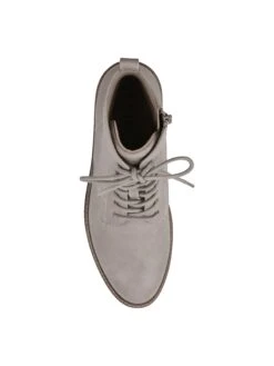 - Faux leather upper in a lace up boot style with a round toe
