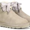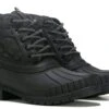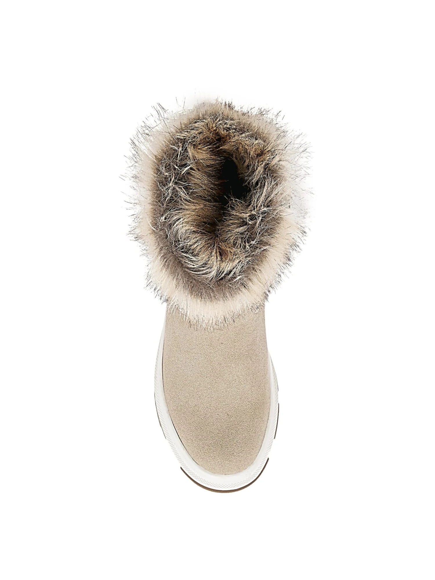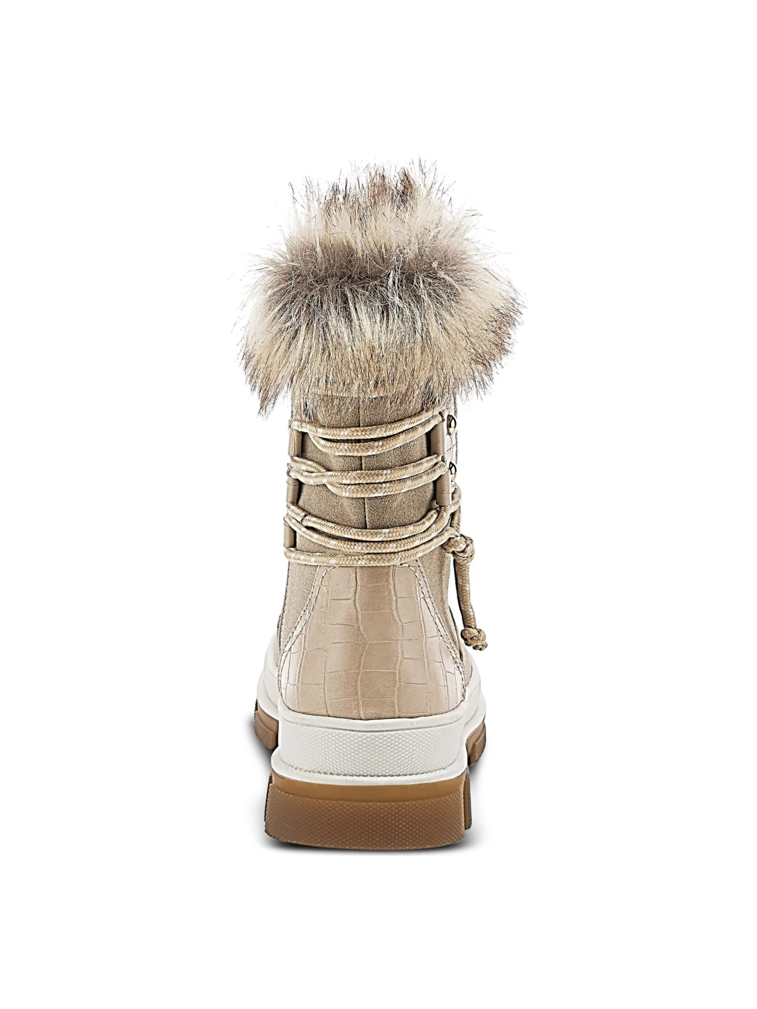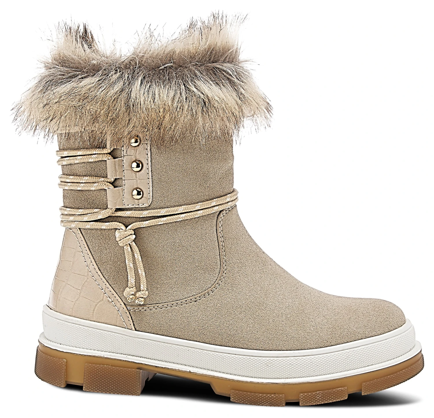 - Synthetic leather upper in a snow and winter boot style with a round toe