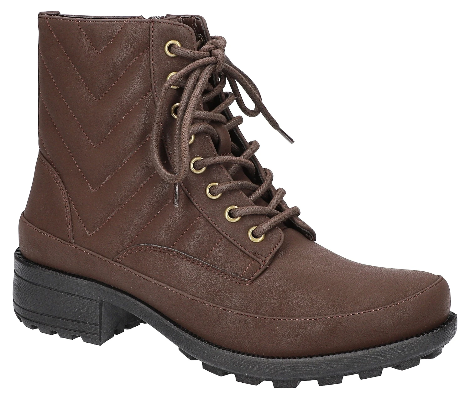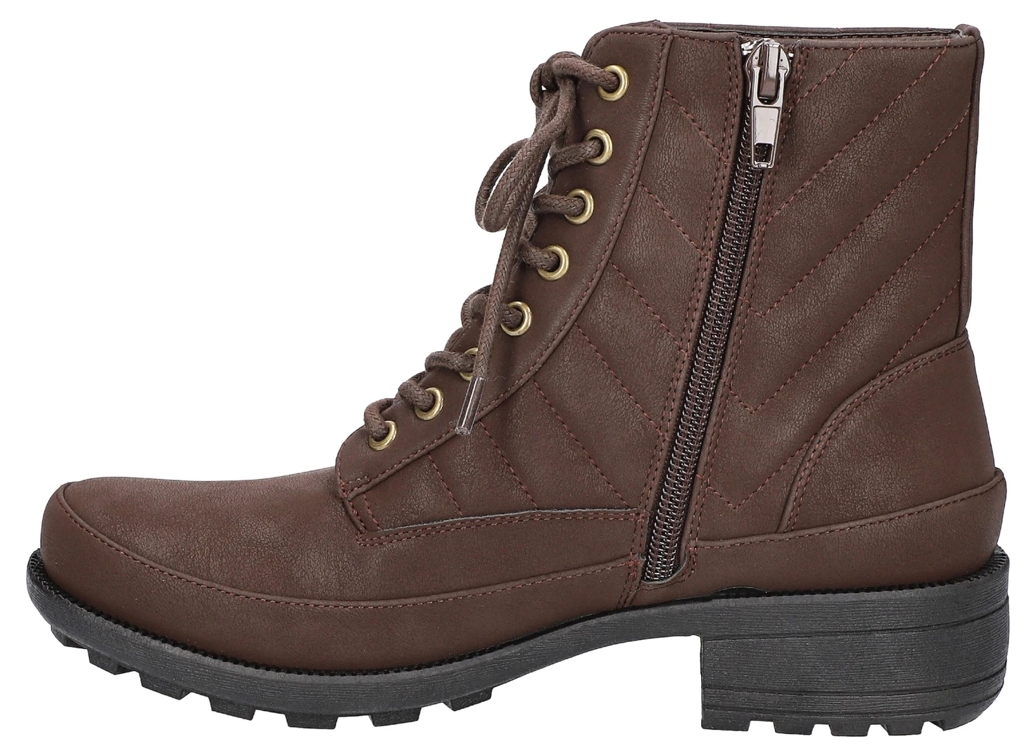 Add personality to any outfit with Easy Street’s Women’s Elsie Combat Boot. Quilted textured details on the upper elevate the style, while the Comfort Wave construction and Easy Motion by Easy Street ultra-light insoles provide support with every stride. Both lace-up and outside zipper closures offer easy on and a customizable fit.