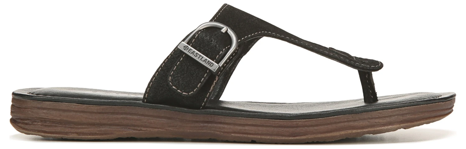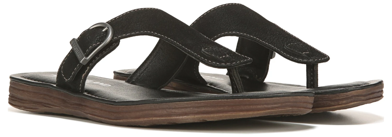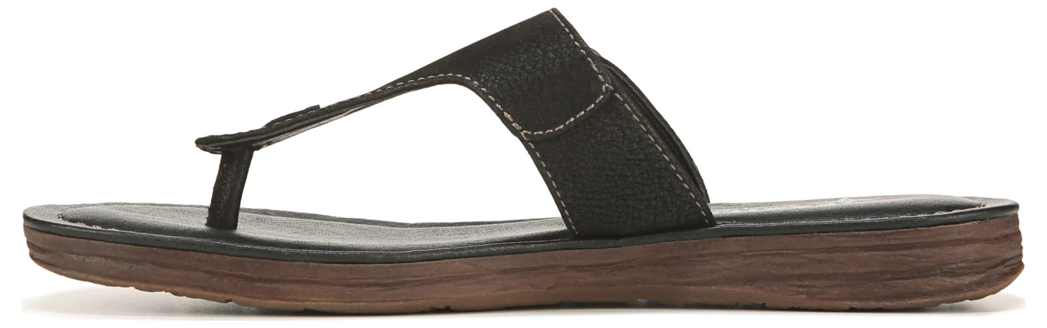 - Faux-leather upper in a flip flop sandal style with an open toe
