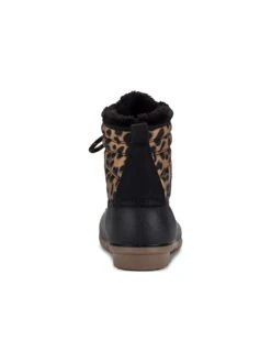- Faux-leather upper in a winter duck boot style with a round toe
