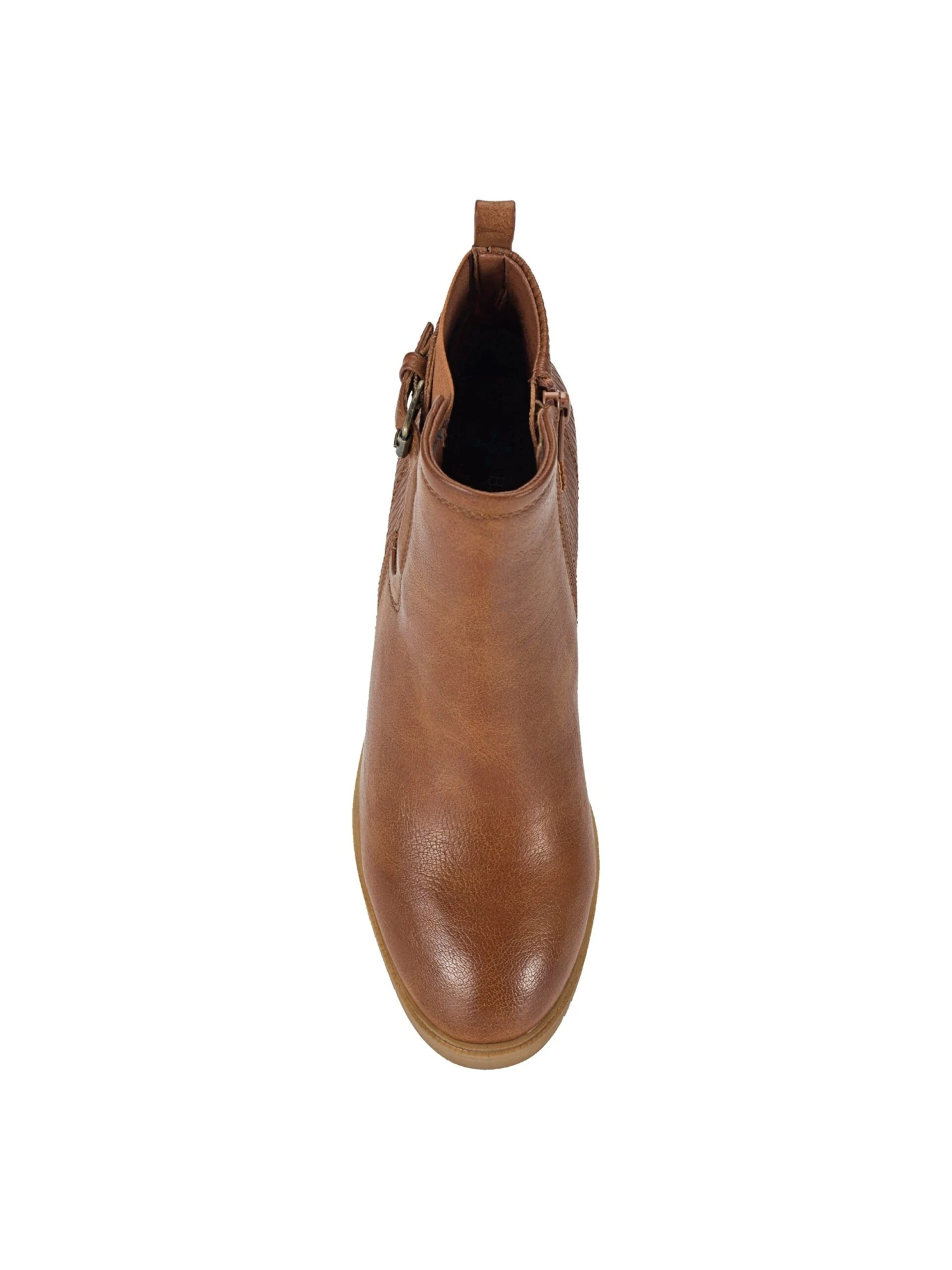 - Side gore and buckle detail