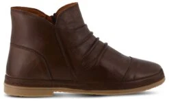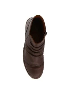 - Leather upper in an flat ankle boot and bootie style with a round toe