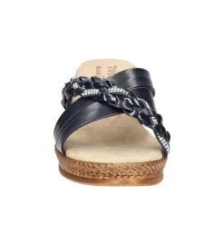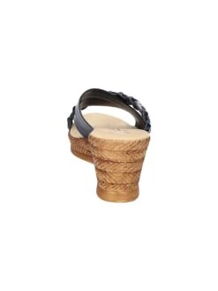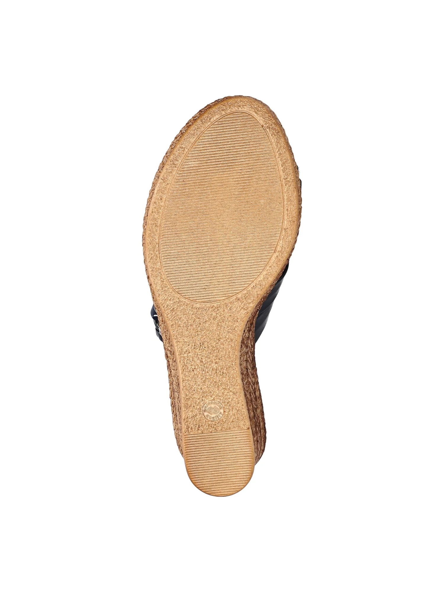 - Synthetic upper in a wedge sandal style with a round toe