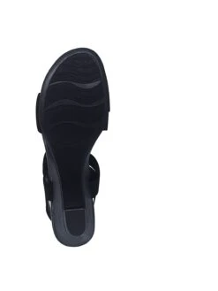 - Vegan leather backstrap and stretch elastic instep strap