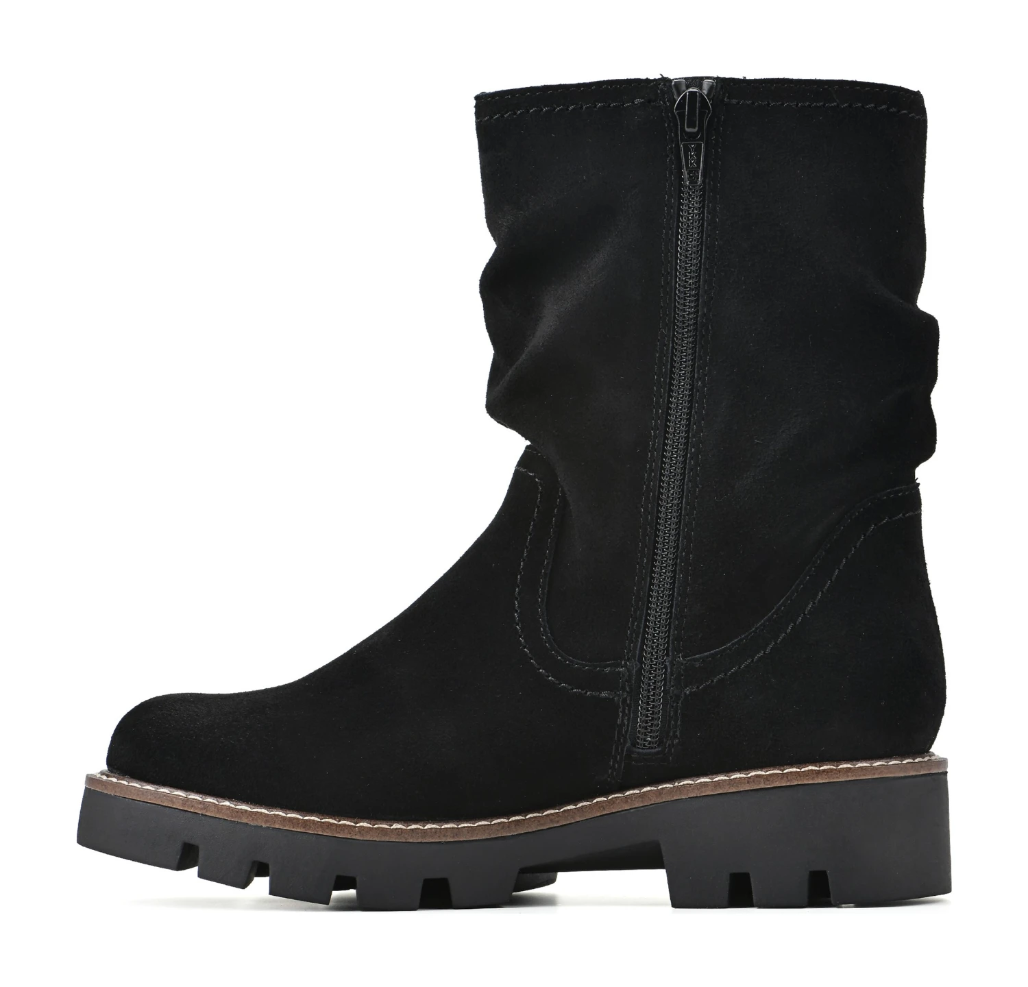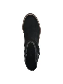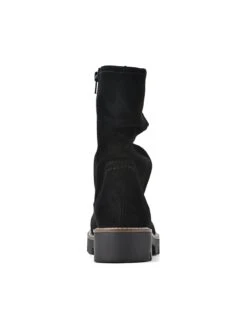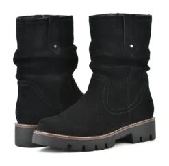 - Leather upper in a boot style with a round toe
