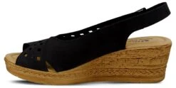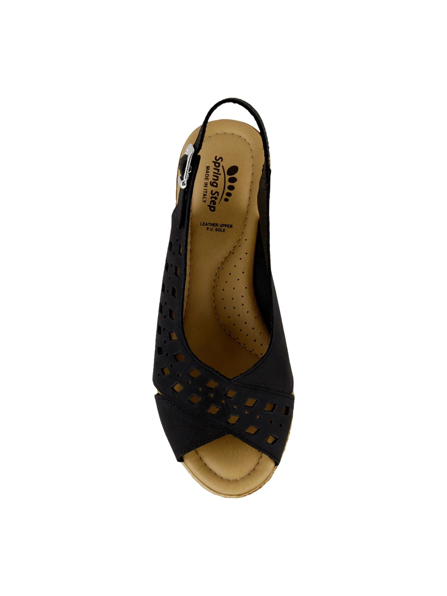 - Leather upper in a comfort wedge sandal style with a peep toe