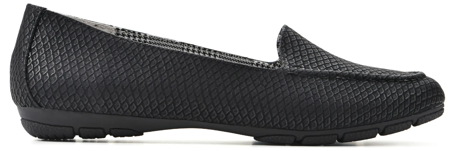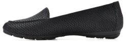 - Fabric, faux-leather, or microsuede upper in a loafer style with an almond toe
