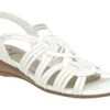 - Faux leather upper in a wedge sandal style with an open toe