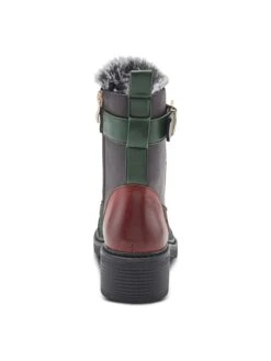- Synthetic leather upper in a lace-up boot style with a round toe