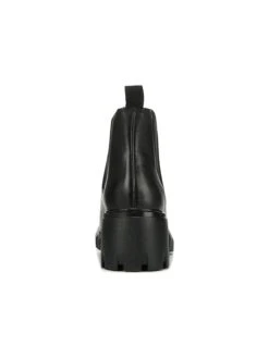 - Leather or suede upper in a block-heel chelsea boot style with a round toe