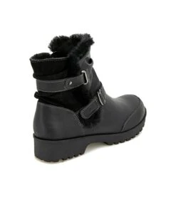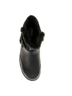 - Synthetic leather upper in a bootie style with a round toe