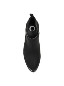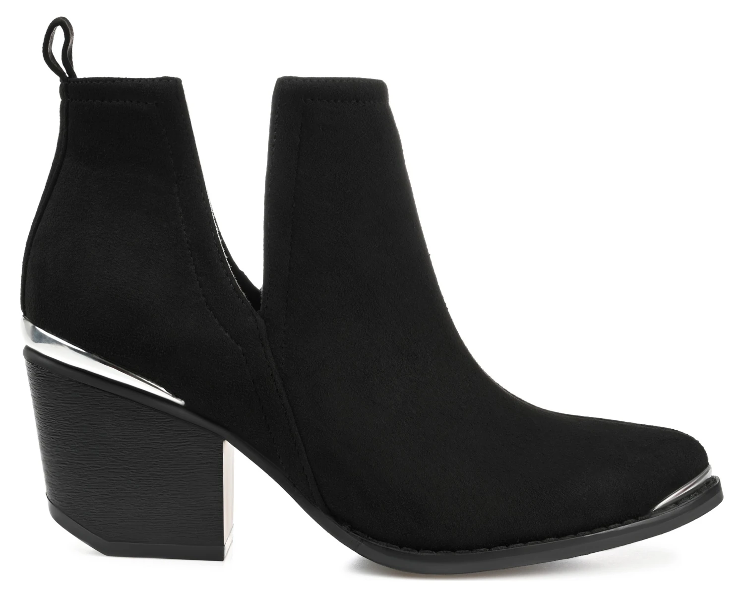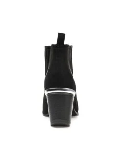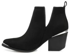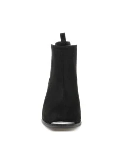 - Vegan suede upper in a block heel boot style with a pointed toe