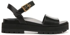 - Leather upper in a platform sandal style with an open toe