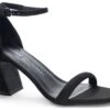 - Buckled ankle strap closure