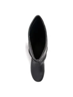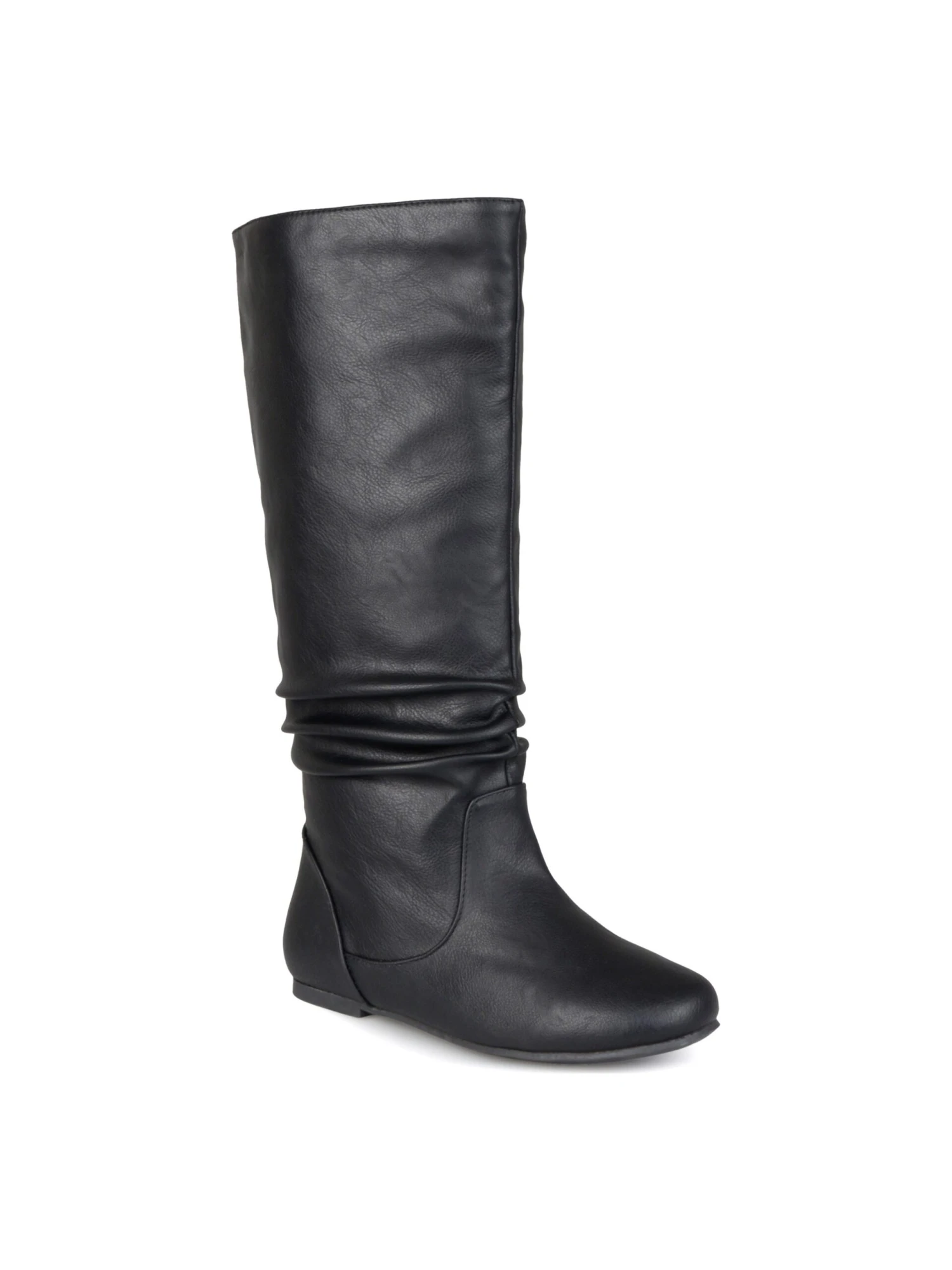 - Vegan leather upper in a tall riding boot style with round toe