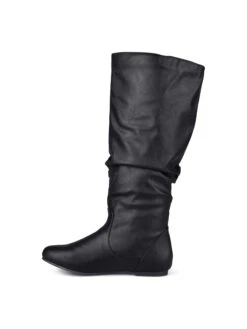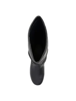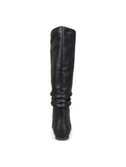 - Vegan leather upper in a tall riding boot style with round toe
