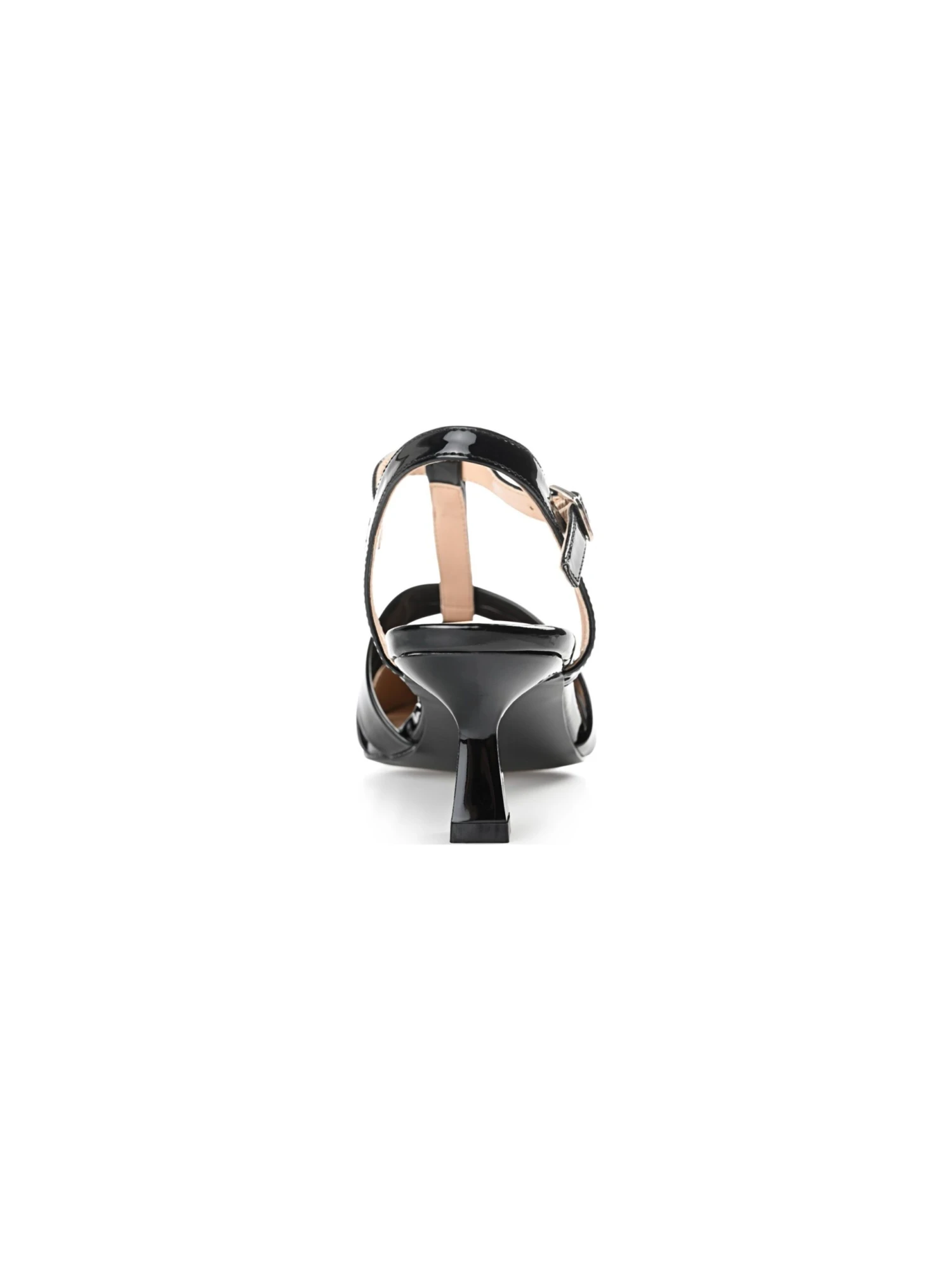- Buckled ankle strap closure
