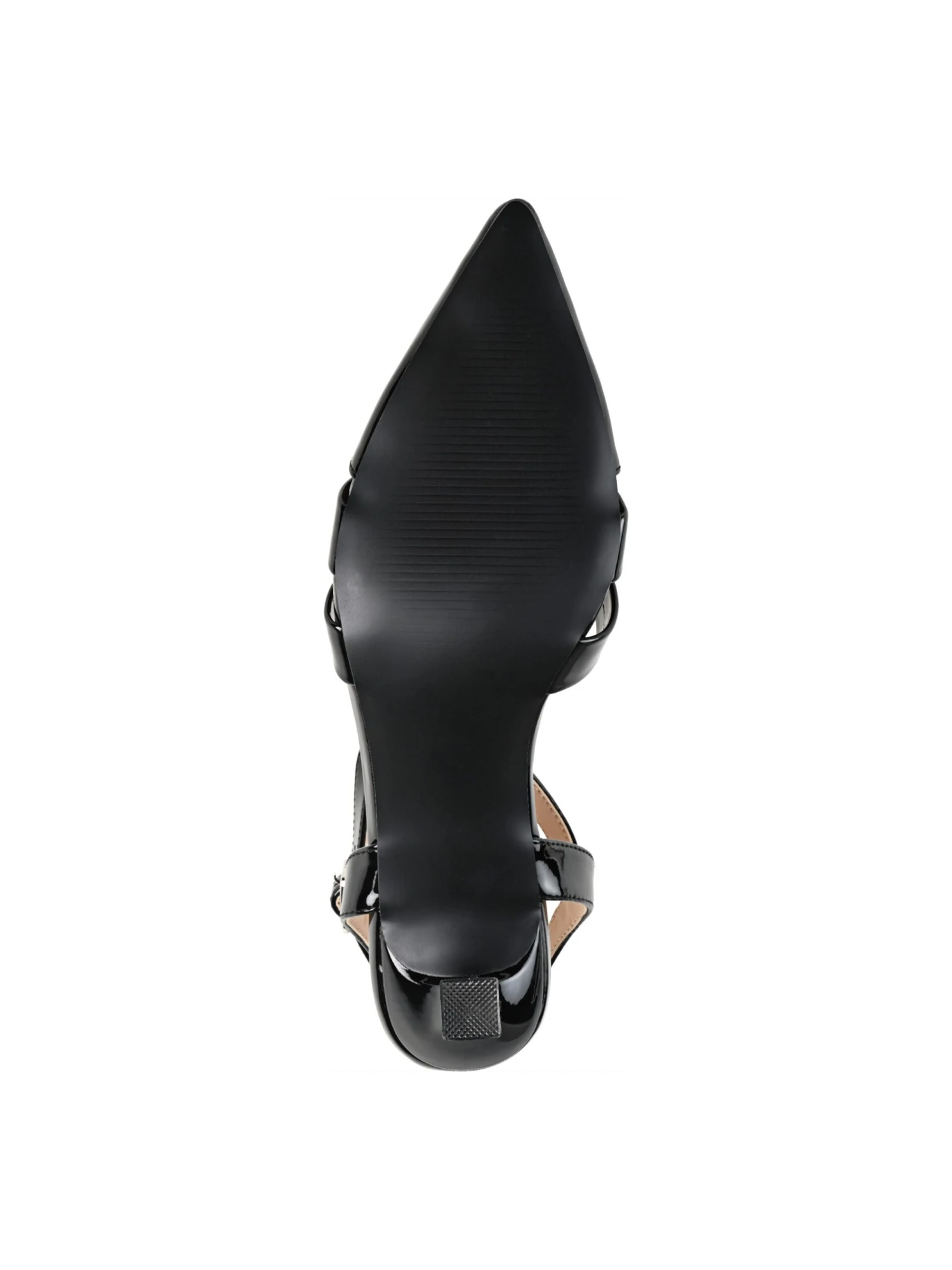 - Faux leather upper in a pump style with a pointed toe