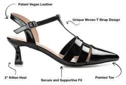 - Durable man-made outsole with a 2″ kitten heel