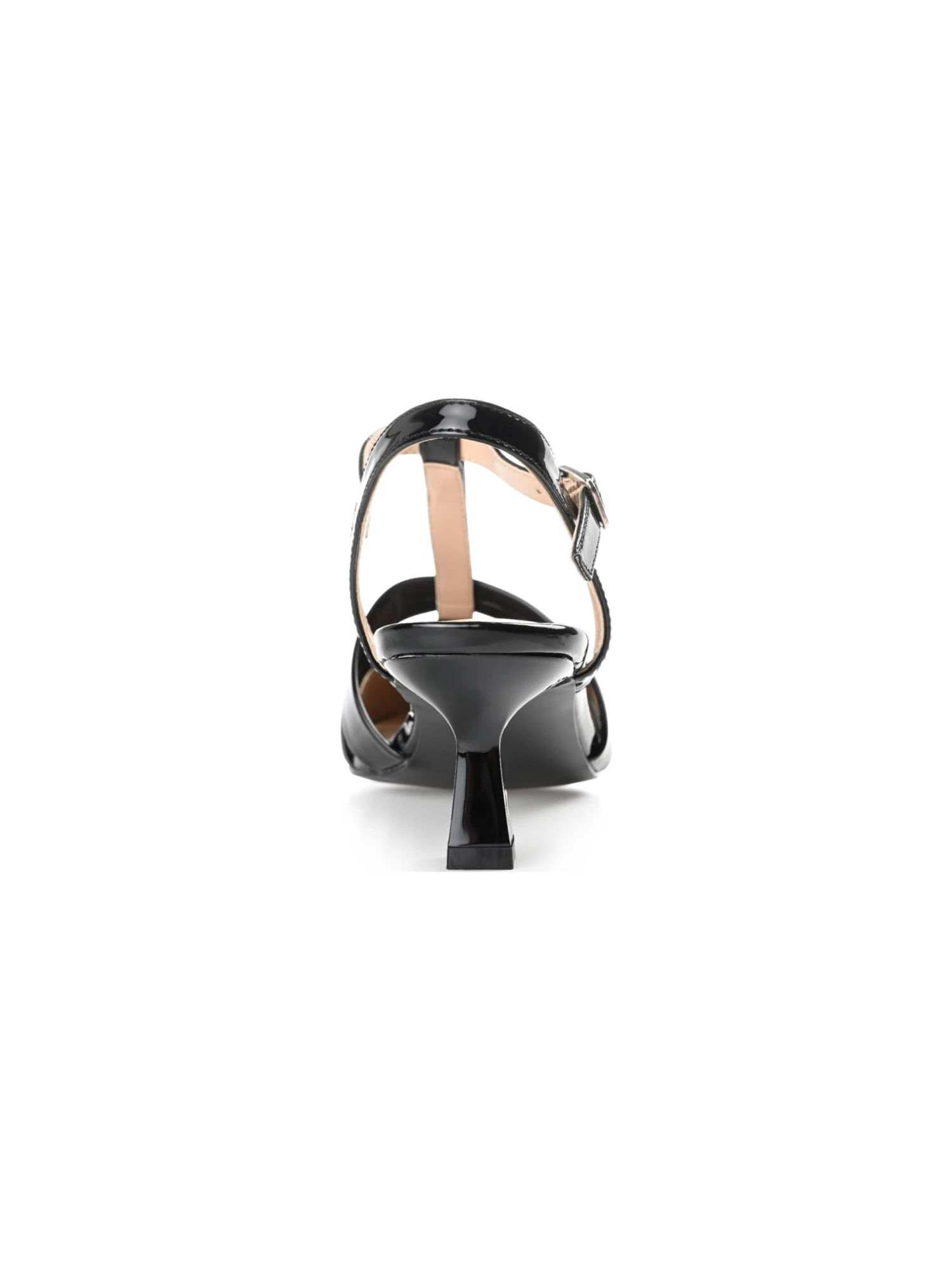 - Buckled ankle strap closure