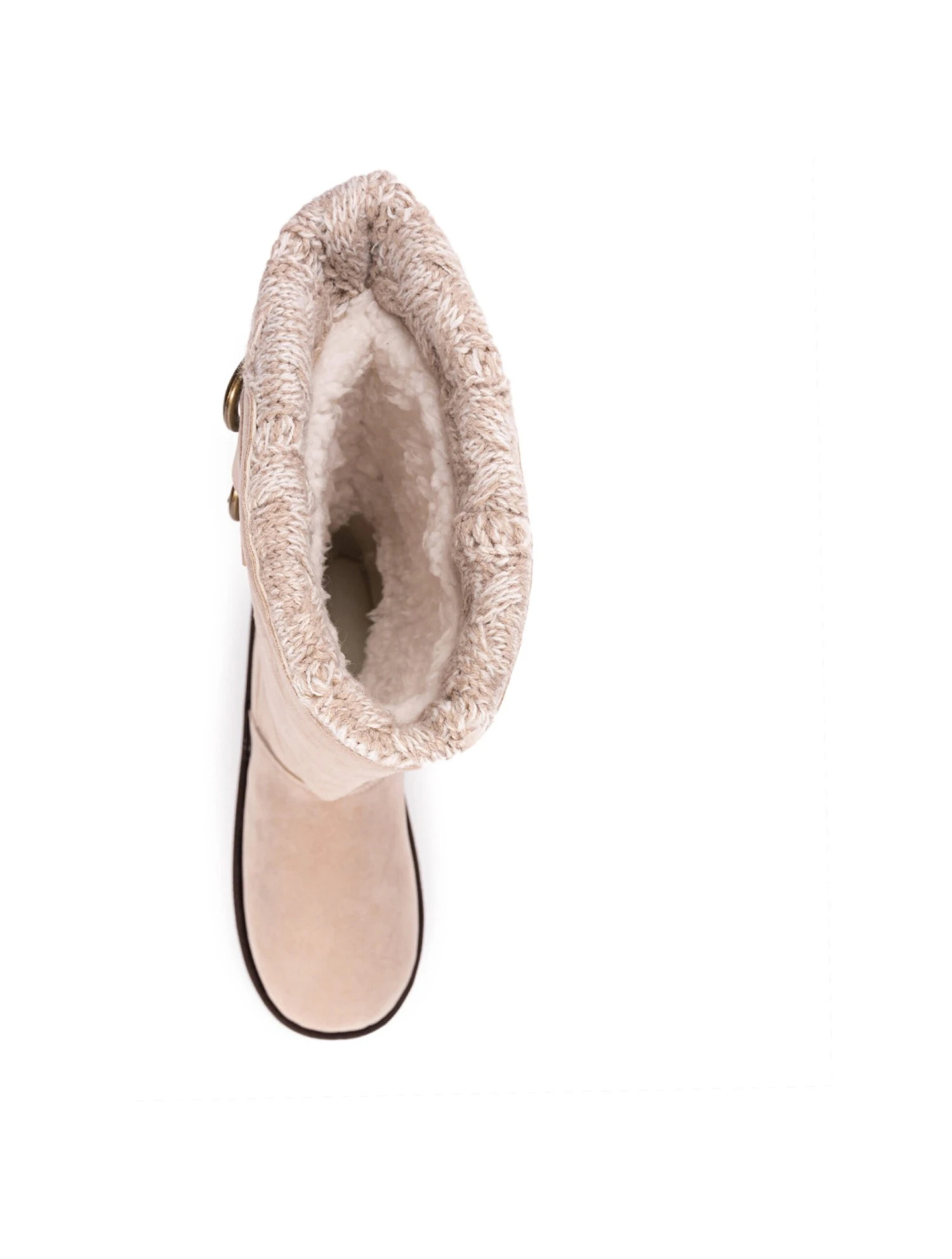- Faux-suede upper in a boot style with a round toe