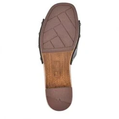 - Vegan leather upper in a clog sandal style with an open toe