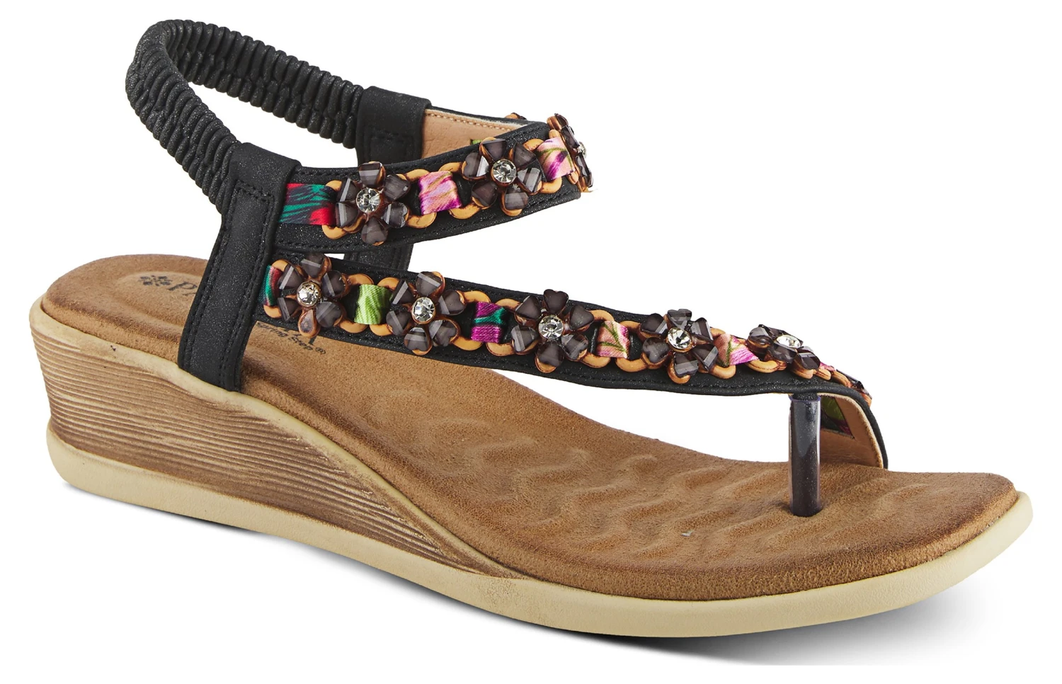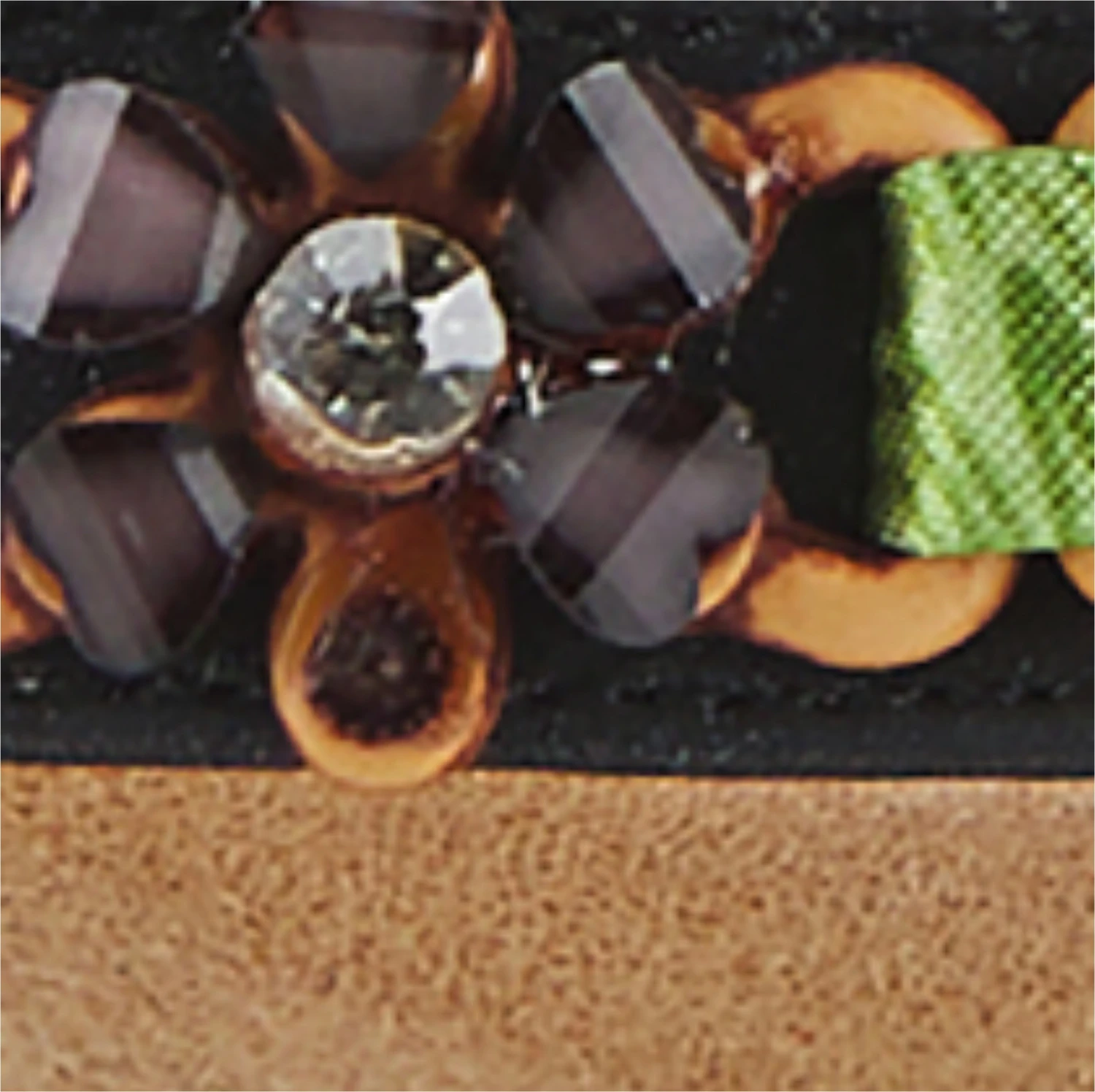 - Upper features interwoven flower rhinestone gems