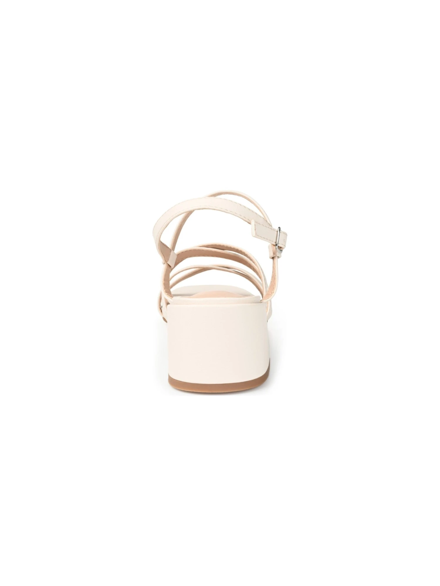 - Buckled ankle strap closure.
