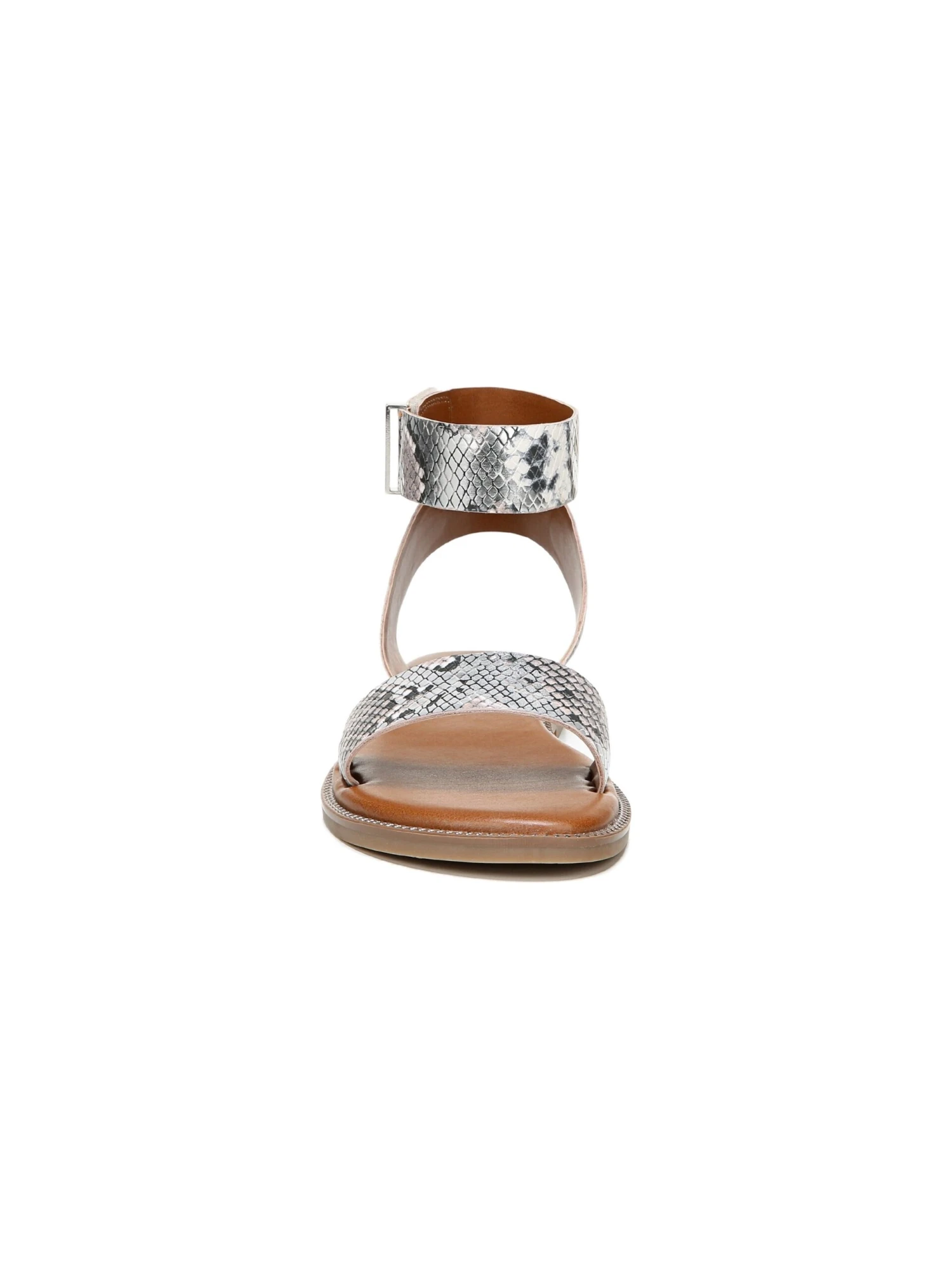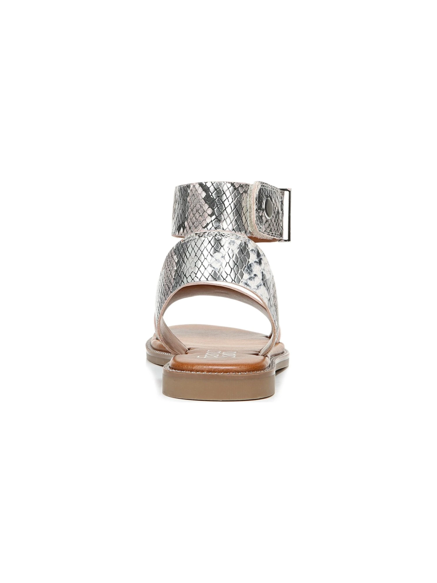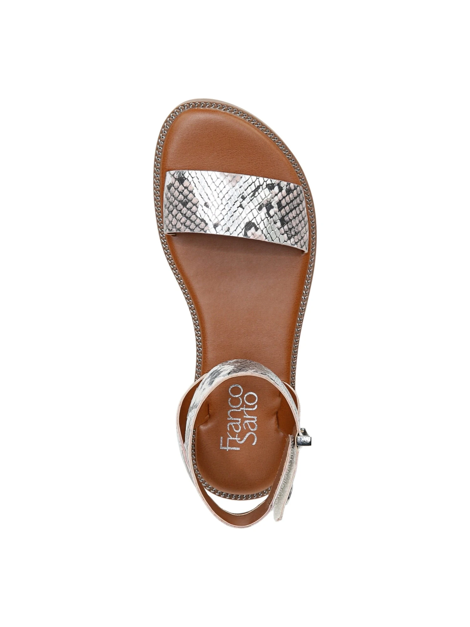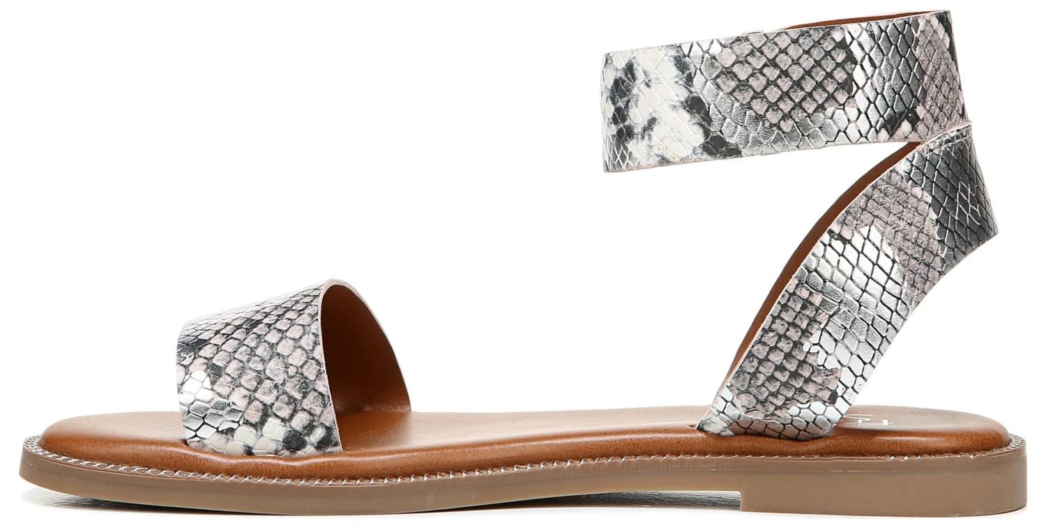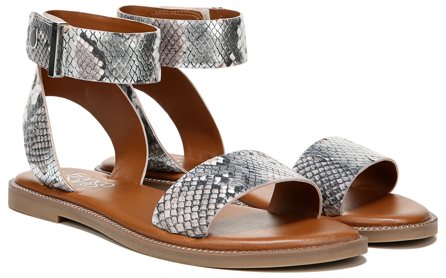 - Leather or snake-printed faux leather upper