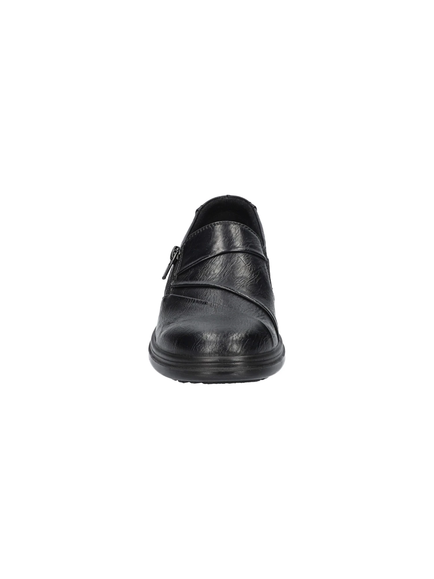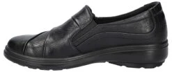 - Synthetic leather upper in a slip on style with a round toe