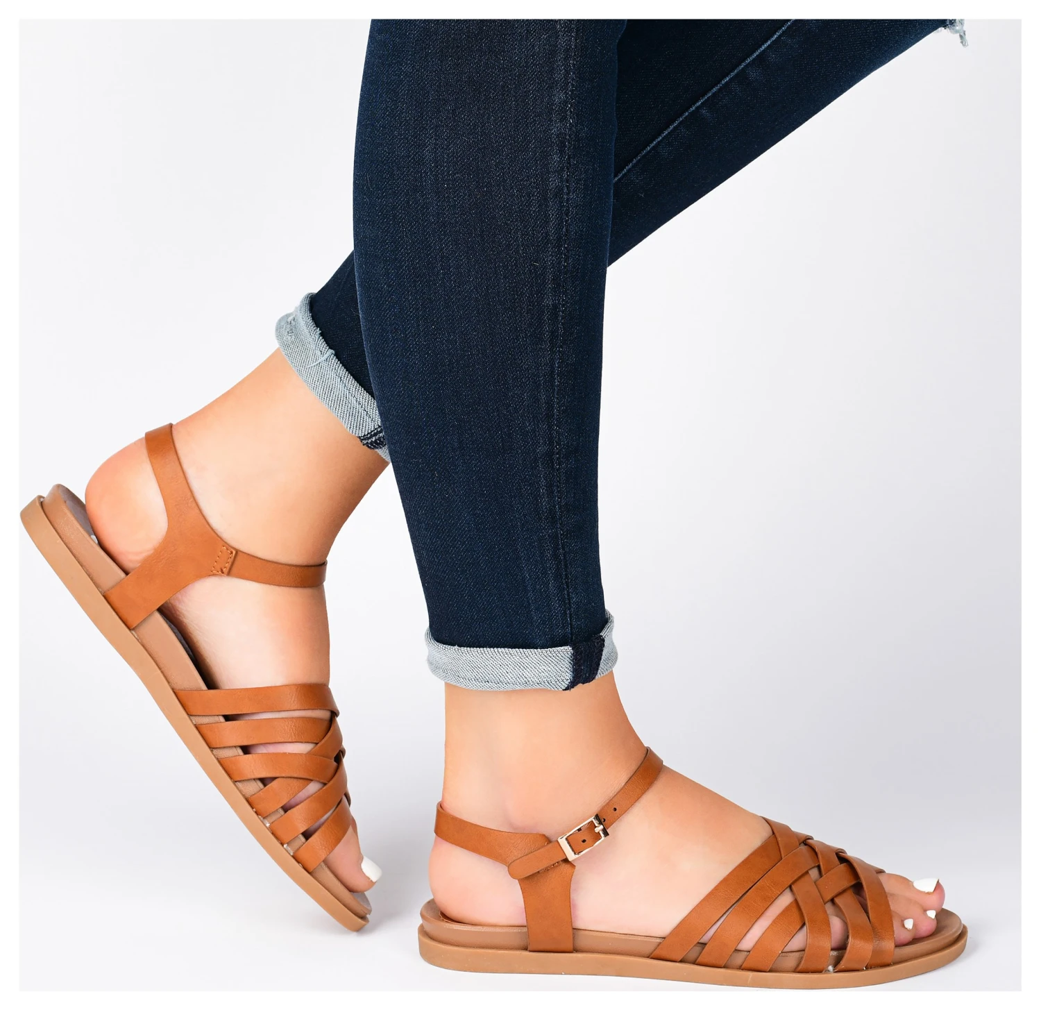 - Buckled ankle strap.