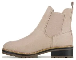 - Microsuede or Faux Leather upper in a block-heel chelsea boot style with a round toe