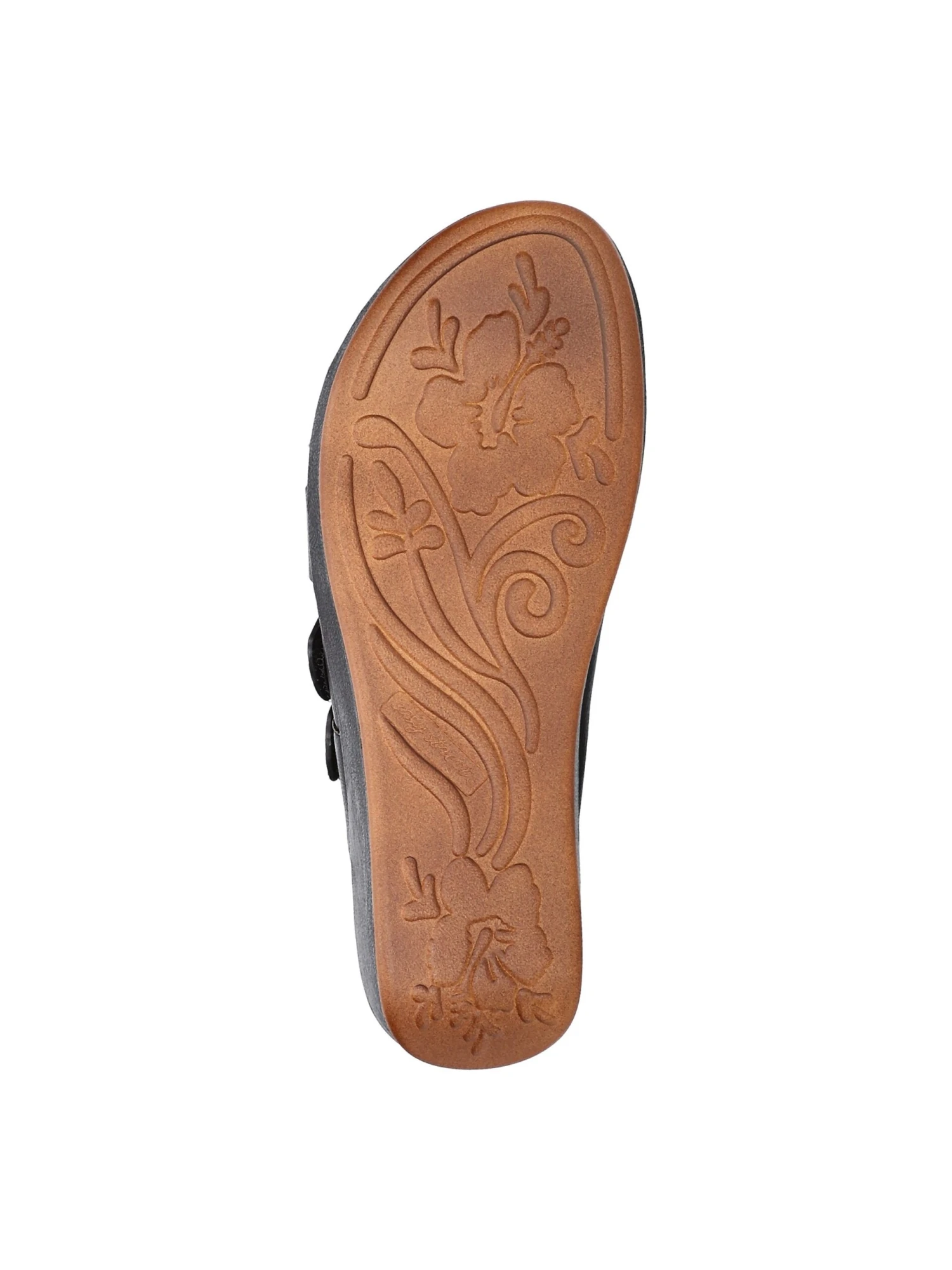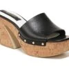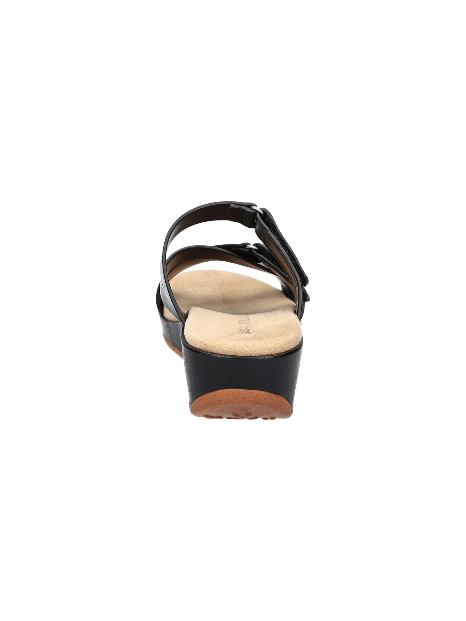 - Synthetic leather upper in a wedge sandal style with a round toe