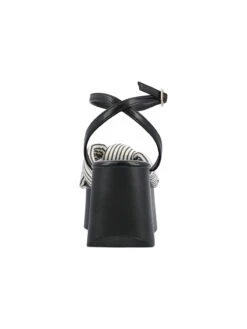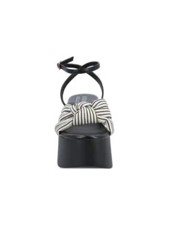 - Vegan leather upper with fabric detail in a platform style sandal with an open round toe