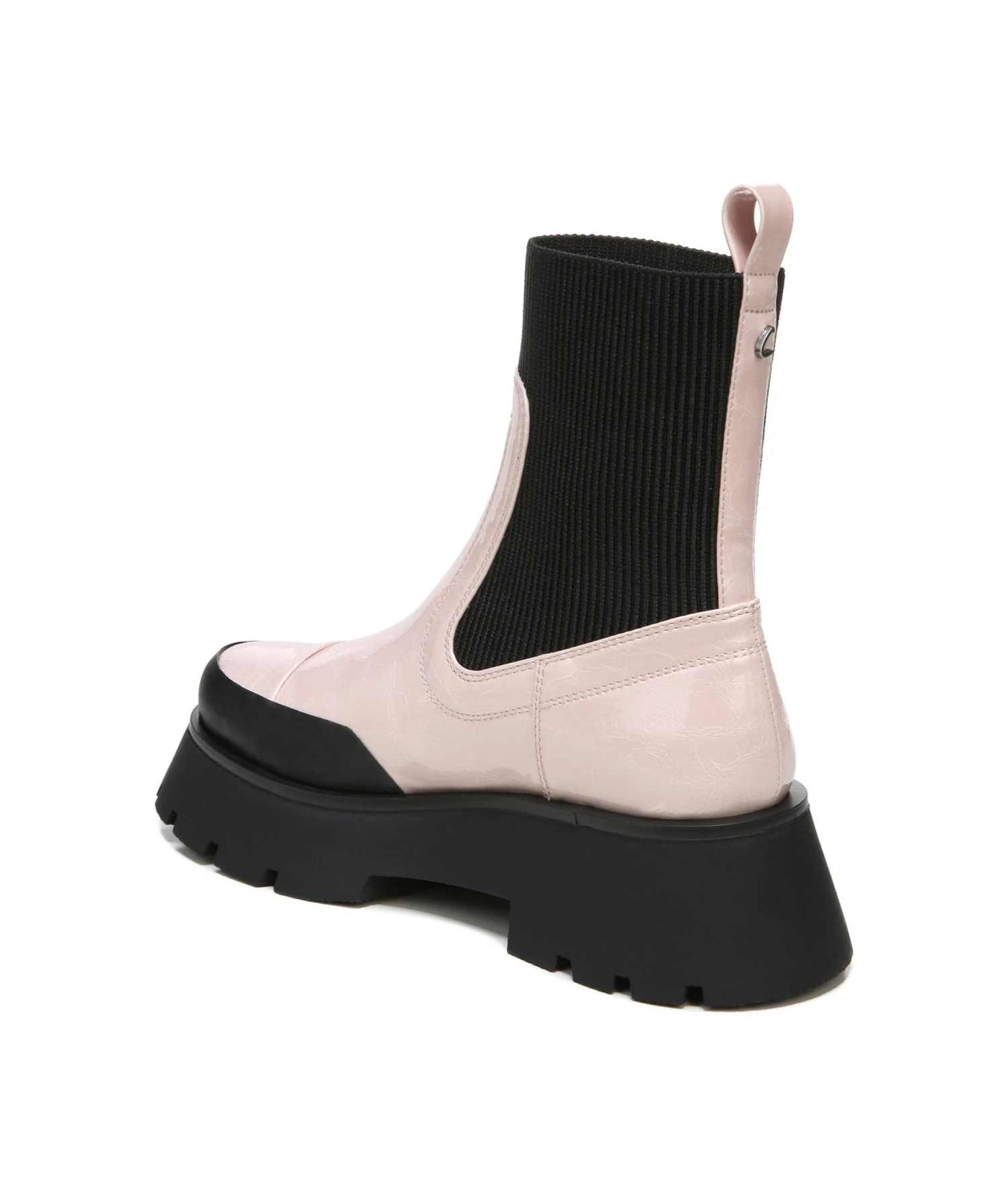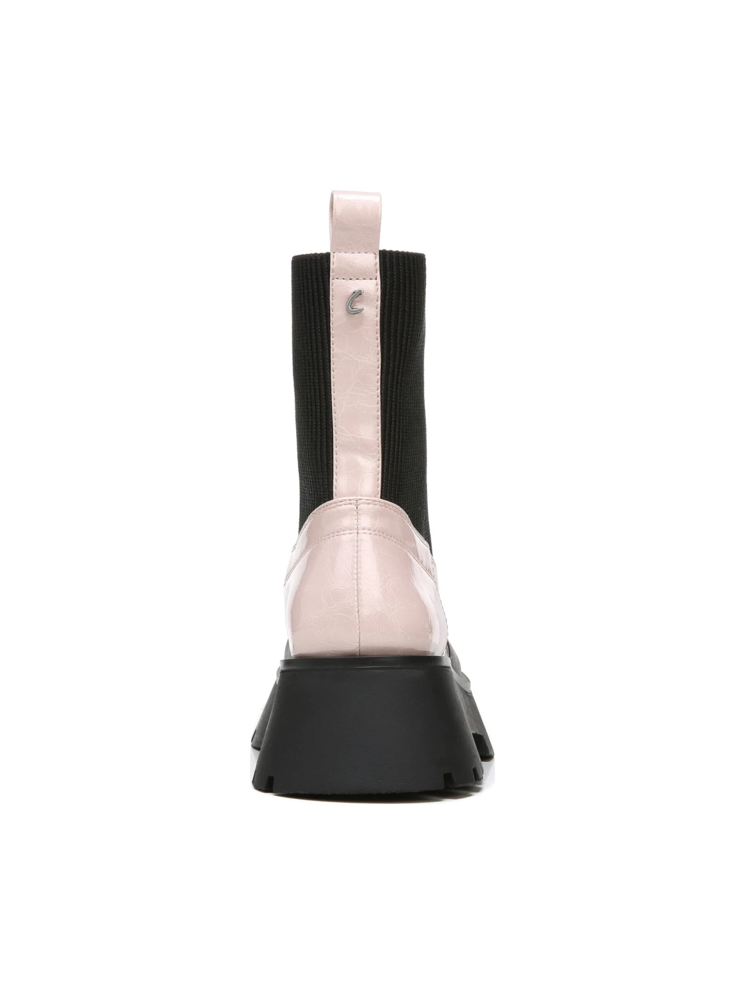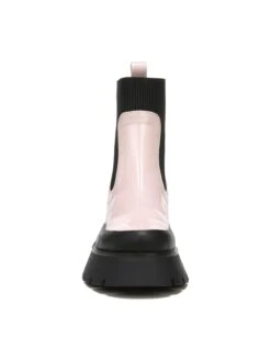 - Faux-leather upper in a bootie style with a round toe