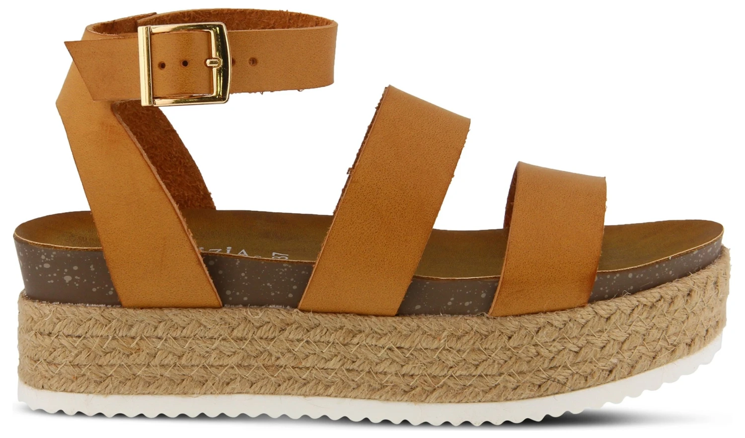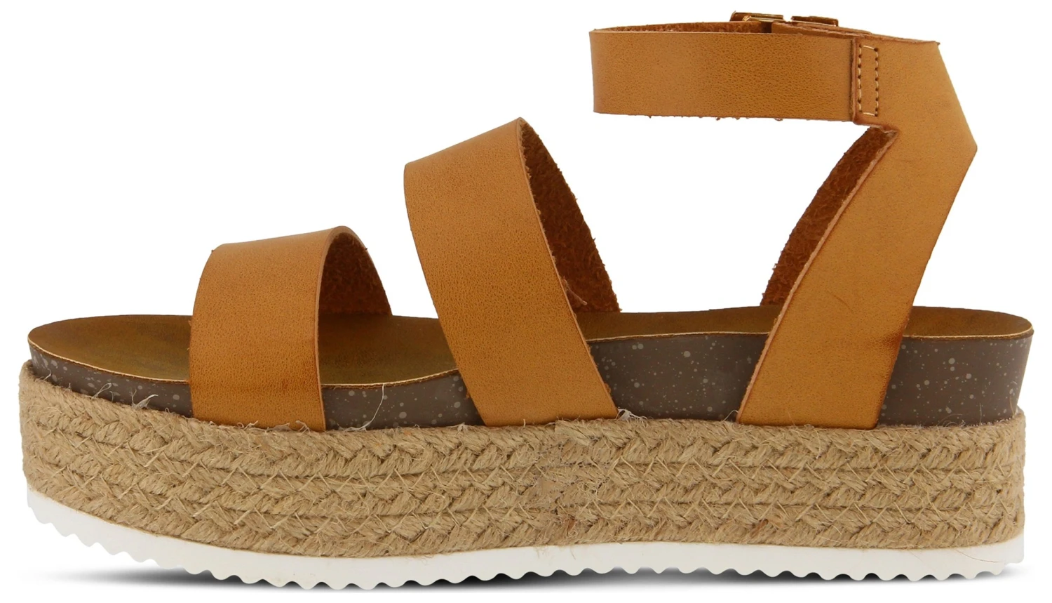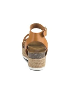 - Faux-leather upper in an espadrille platform sandal style with an open toe