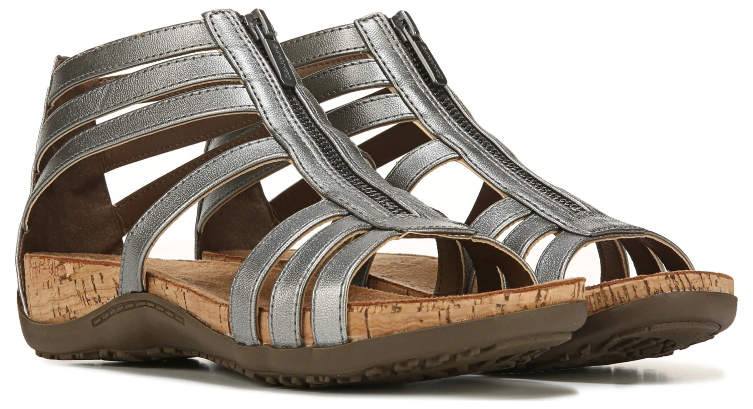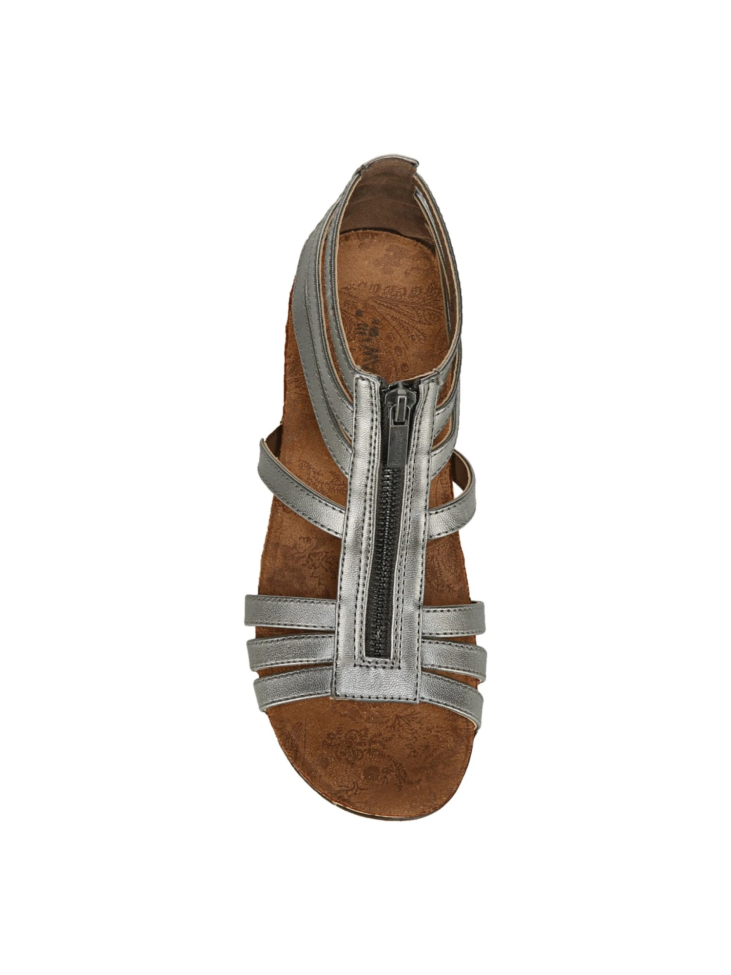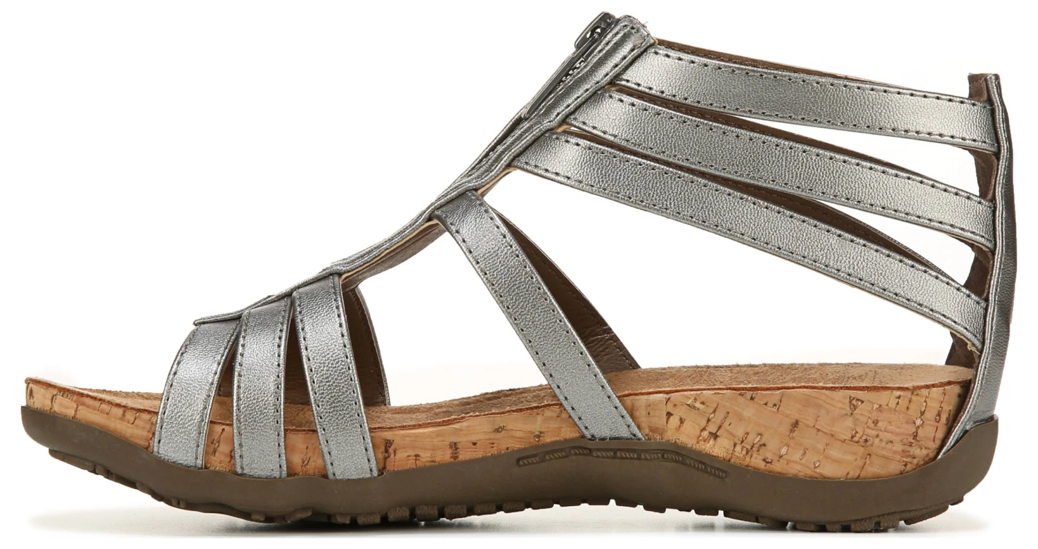 - Faux-leather upper in a comfort sandal style with an open toe