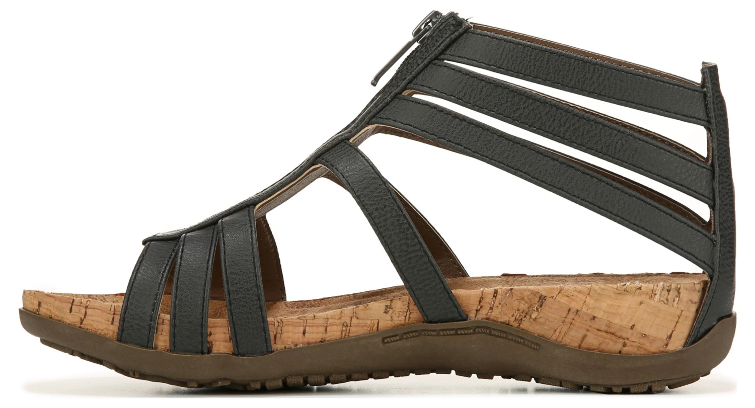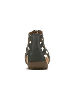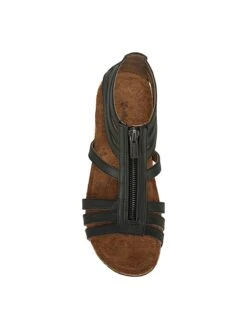 - Faux-leather upper in a comfort sandal style with an open toe