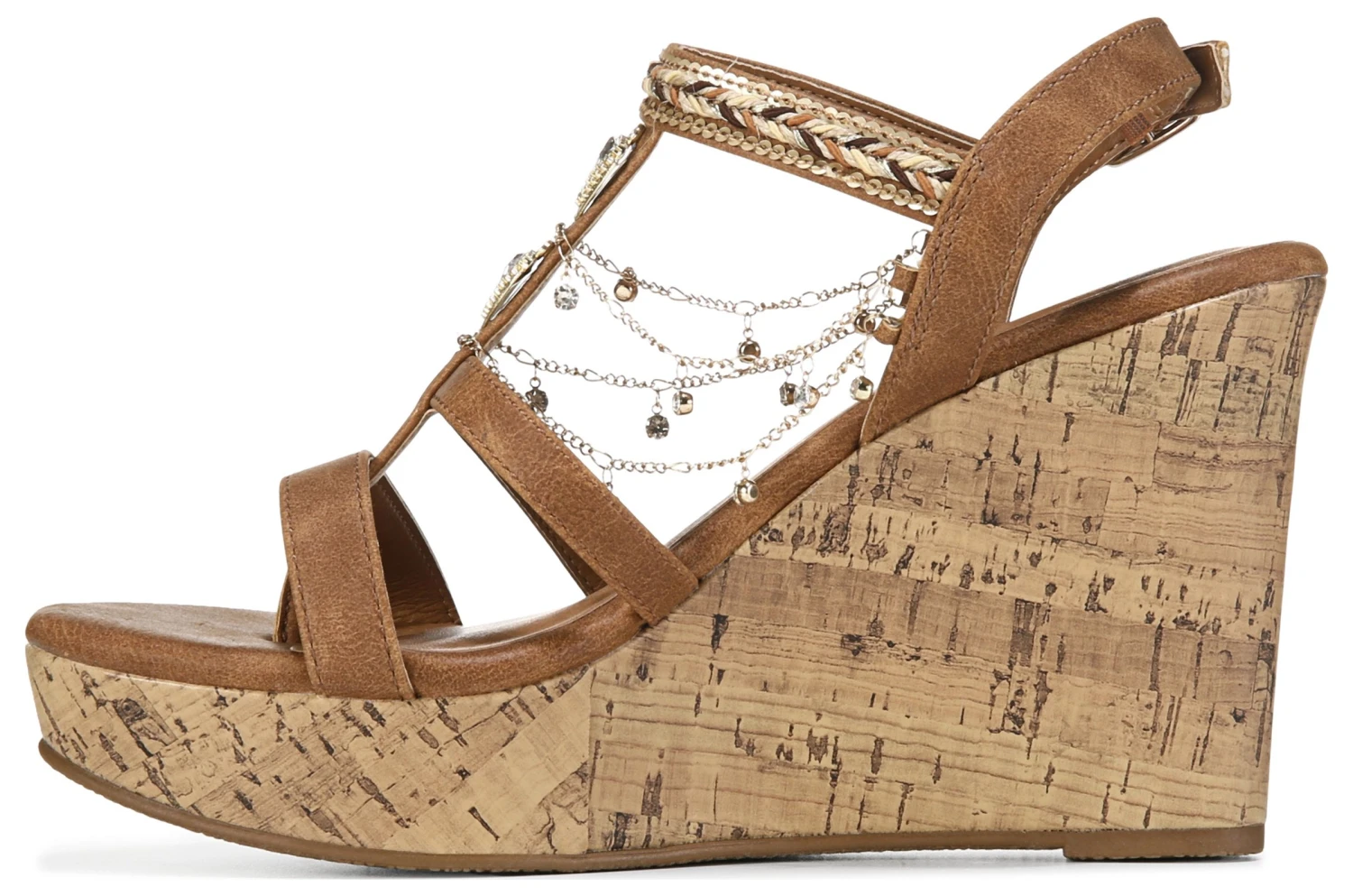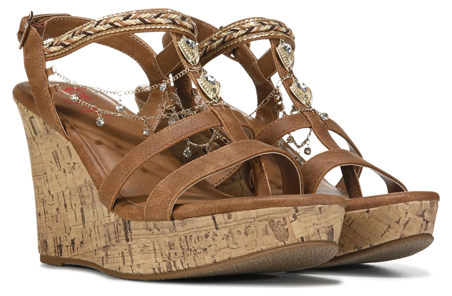 - Jeweled accessories draping from straps