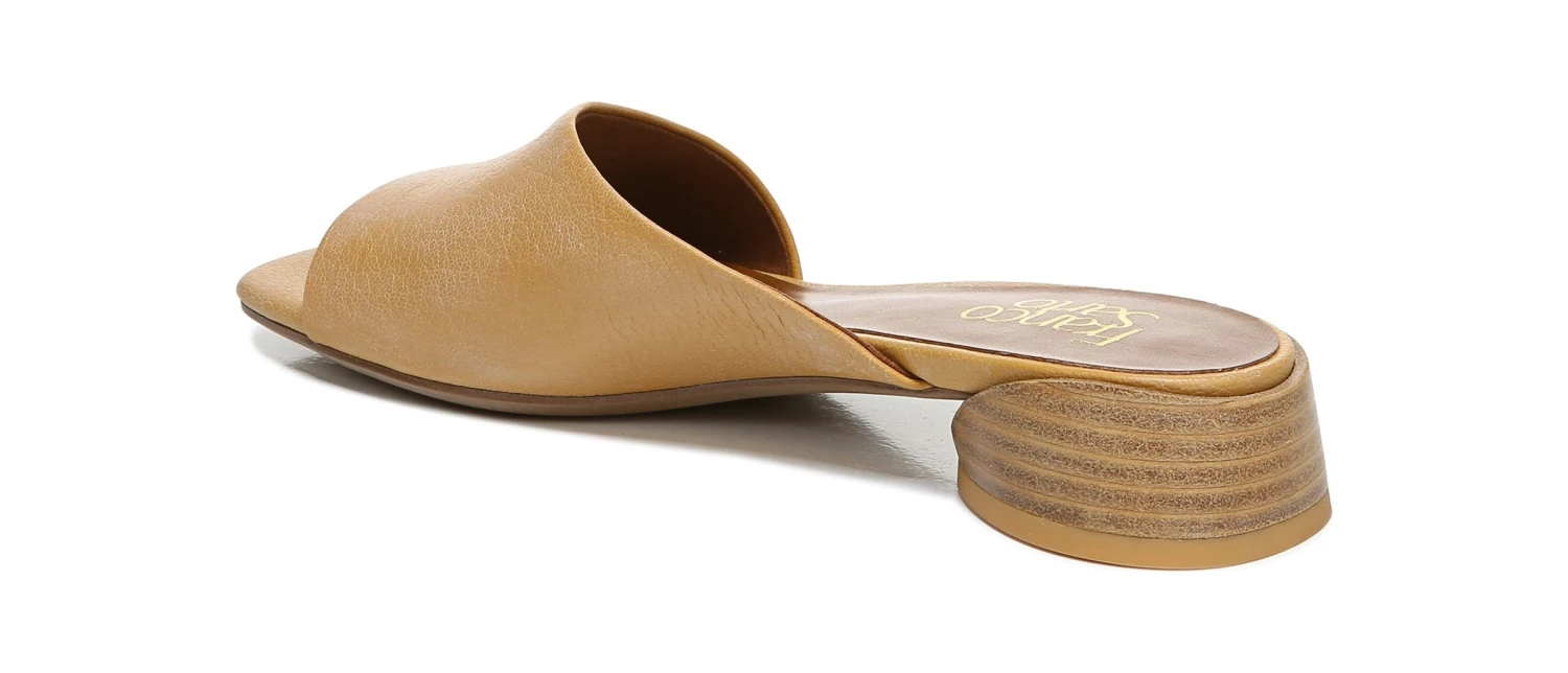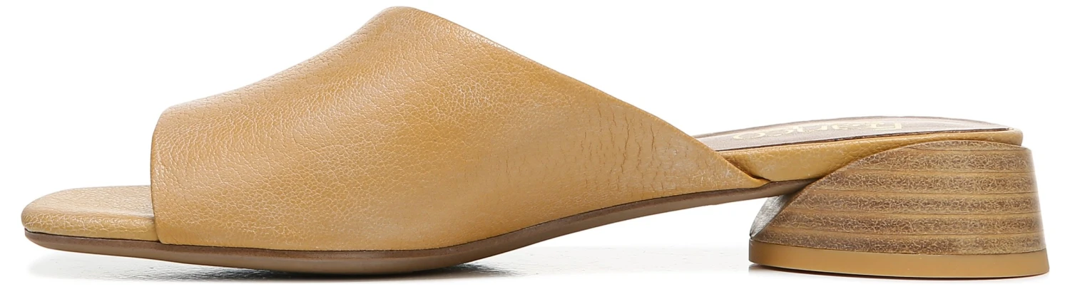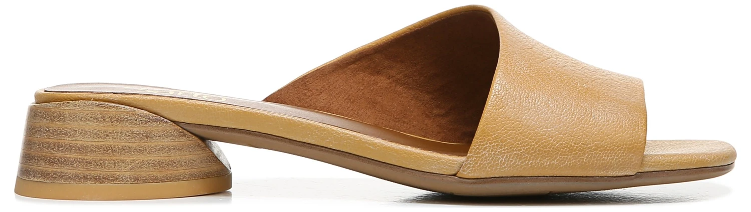 A new kind of classic. This beautiful mule sandal with an asymmetrical strap and modern cylindrical heel is always a favorite.