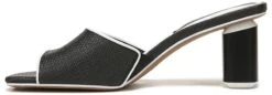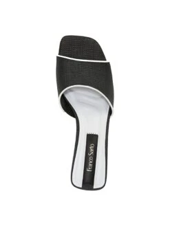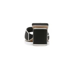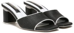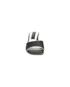 Statement-making slide dress sandals for women with a modern geometric heel in an artful array of materials, textures, and au currant colors.