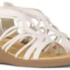 - Synthetic leather upper in a platform sandal style with an open toe.