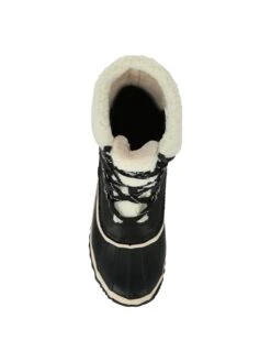 - Waterproof faux-leather upper in a duck boot style with a round toe
