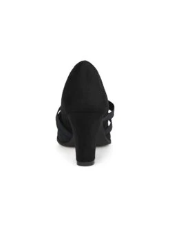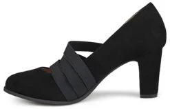 - Vegan suede upper in a pump style with a round toe