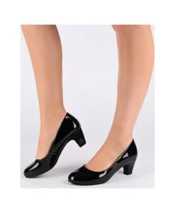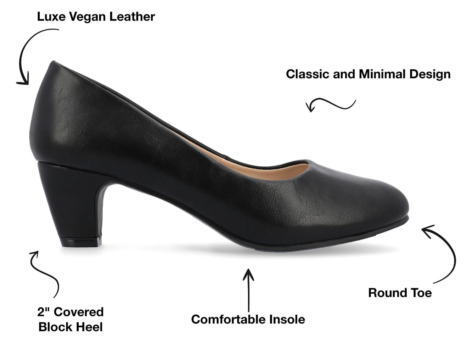 - Vegan leather upper in a pump style with a round toe