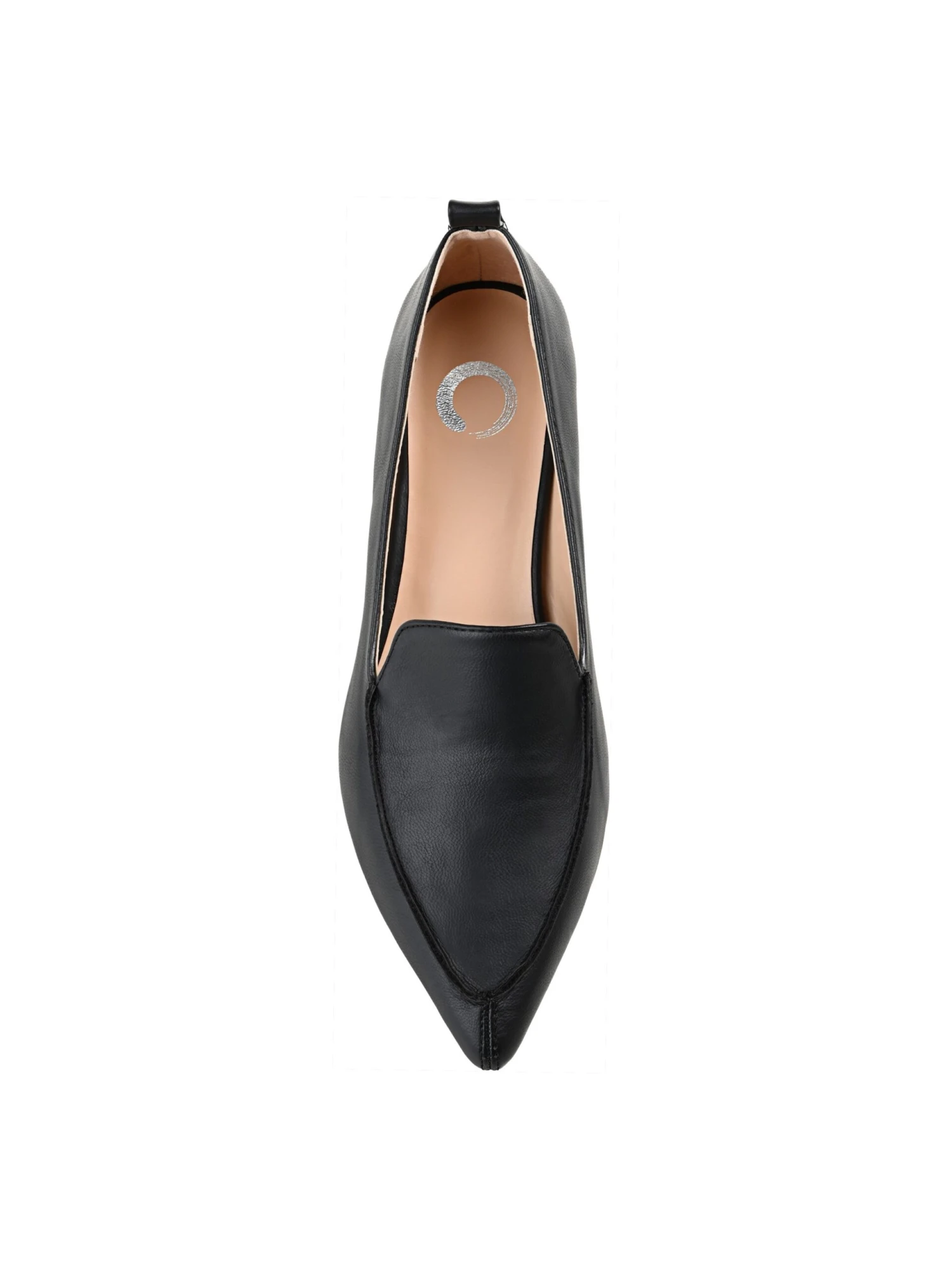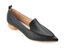 From jeans to dress pants, the Women’s Maggs Loafer by Journee Collection look good with everything. This essential flat is styled with twin notches and a modern pointe-toe. Soft vegan leather elevated by a faux wood heel and padded footbed finishes this comfortable look.