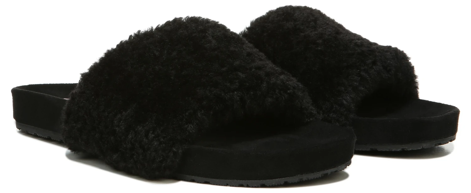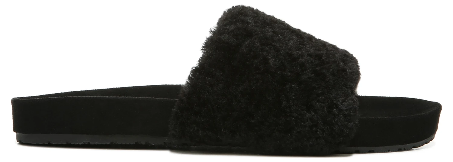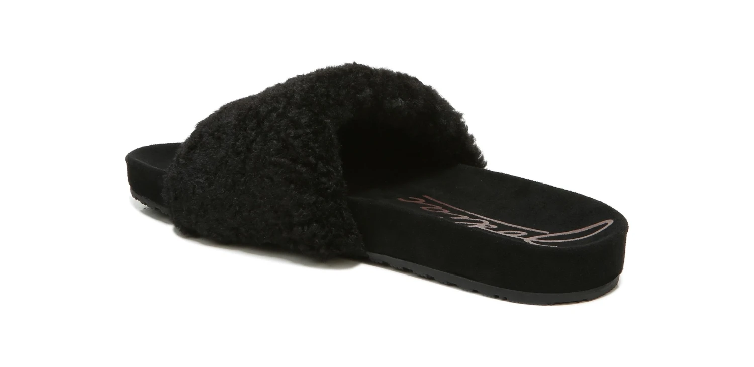 Shift into relax mode. This indoor-outdoor slide sandal features soft, cozy materials that are so right now.