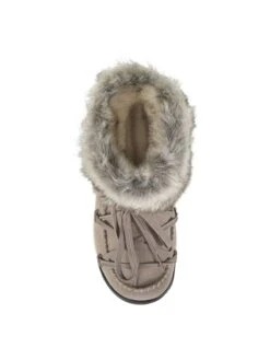 - Suede upper in a winter boot style with a moc toe