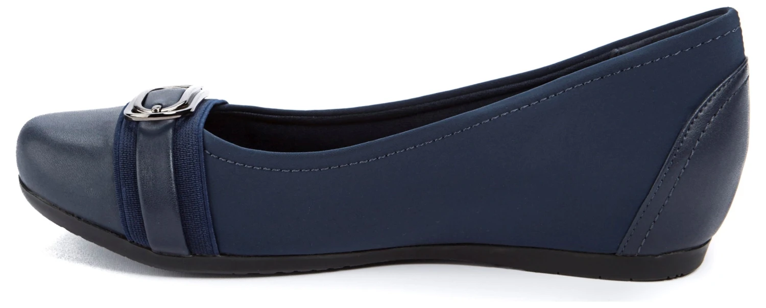 - Fabric upper in a casual slip-on wedge style with a round toe